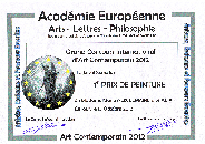 décerné par l'Académie Européenne " Arts - Lettres - Philosophie "